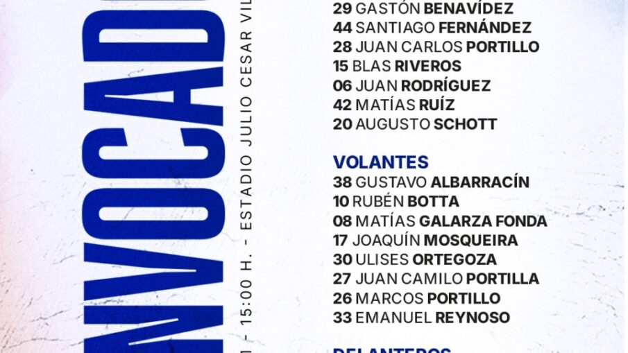 El cuerpo técnico encabezado por Alexander Medina dispuso que 23 jugadores concentren a la espera del duelo ante el clásico rival. Respecto a la última convocatoria, se suman a la nómina Gustavo Albarracín, Matías Galarza Fonda y Juan Camilo Portilla. Por otro lado, no integran la lista de jugadores concentrados Jeremías Florentín, Tomás Cardona, Timoteo Chamorro y Matías Gómez.