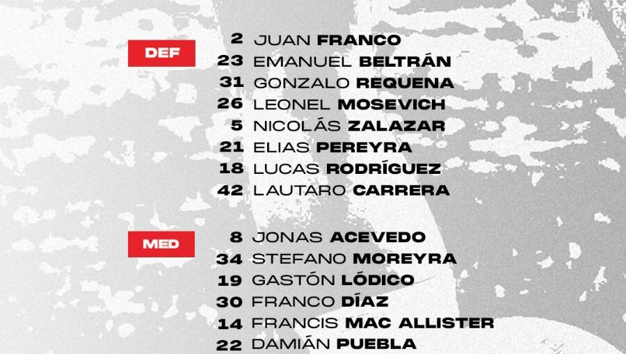 Para este encuentro, el entrenador Daniel Oldrá confeccionó una lista de 23 jugadores convocados que ya se encuentran concentrando en Buenos Aires. Con respecto a la nómina del último encuentro ante Talleres, hay tres modificaciones.