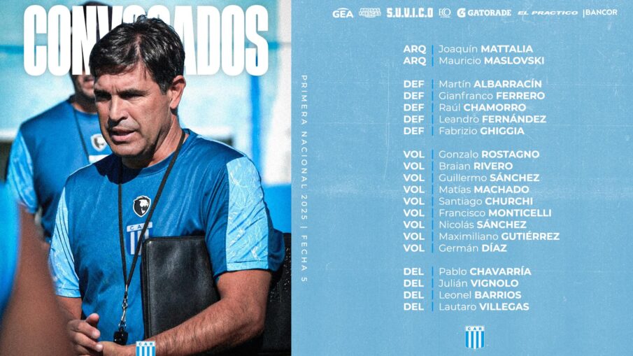 Los convocados de Diego Cochas para el duelo ante Arsenal de Sarandi marzo 8, 2025 Facundo Mercado Racing de Córdoba 0 A través de sus canales oficiales, Racing dio a conocer la nómina de citados para enfrentar al conjunto del Viaducto.Con respecto a la ultima lista,Vuelven Germán Díaz y Maxi Gutiérrez a ser convocados.