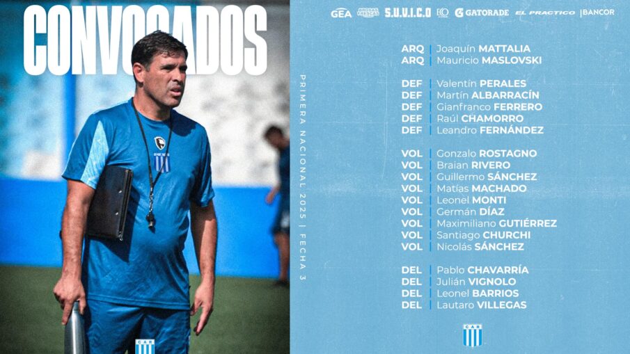 A través de sus canales oficiales, Racing dio a conocer la nómina de convocados para recibir al equipo marplatense.