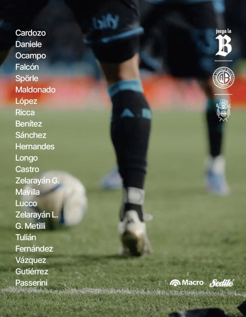 A través de sus canales oficiales, Belgrano dio a conocer la lista de citados para el duelo ante el “Lobo”, compromiso que de sumar númericamente, lo vera clasificado con una fecha de anticipación.