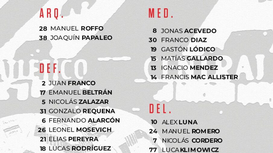 En su reemplazo fue citado el uruguayo Matías Fonseca. El “Gato” todavía no puede contar con Damián Puebla ni Matías Klimowicz, quienes continúan con sus procesos de recuperación por distintas lesiones. Fonseca, por su parte, viene de ser suplente en el clásico de Reserva ante Talleres.