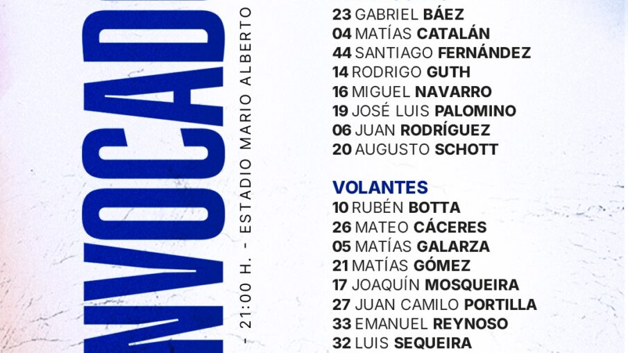 Con respecto a la última convocatoria, reaparecen los nombres del central José Palomino y el volante ofensivo Rubén Botta. En contrapartida, no integran la nómina el arquero Santino Barbi ni el delantero Lucas Alfonso.