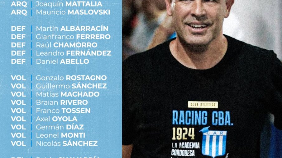 Los convocados por Cochas para el duelo ante San Miguel abril 13, 2025 Facundo Mercado Racing de Córdoba 0 A través de sus canales oficiales, ‘La Academia’ dio a conocer la nómina de convocados para el duelo ante uno de los mejores equipos de la categoría, que contará con el regreso del goleador Bruno Nasta al estadio Miguel Sancho
