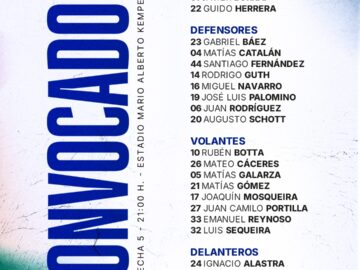 El cuerpo técnico encabezado por Carlos Tevez dispuso que la delegación este compuesta por 24 jugadores. Con respecto a la última convocatoria, reaparecen los nombres Ver mas